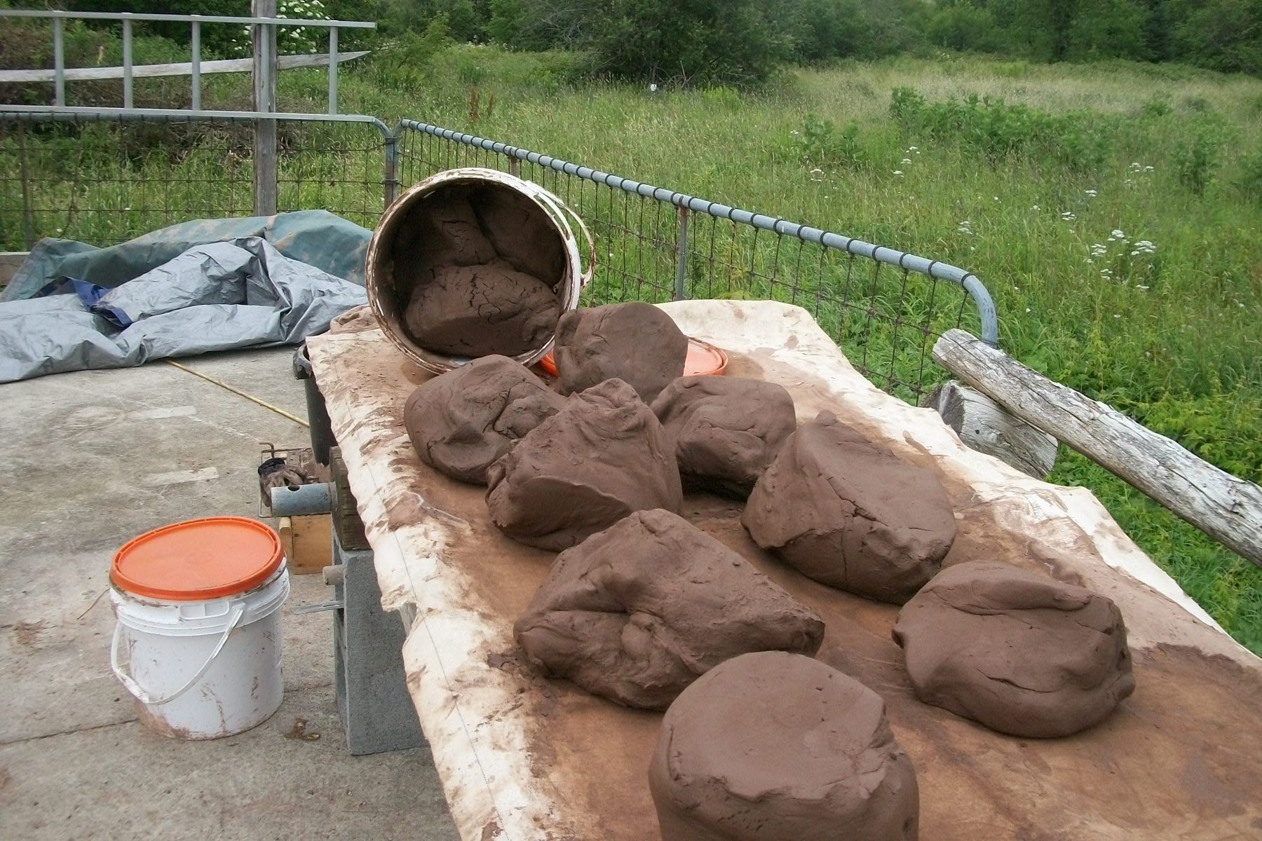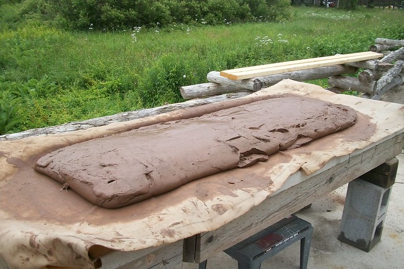 Fundy mud slurry, being sieved before setting in the sun to dryStarting to dry fundy mud, usually in Julyhighland shale mining tools, container goes in my back pack mining shale, a fossil paleosol from the nearby highlands shale testing… shale is ‘short’ as in not plastic. Can be formed wet with hammer rocks the big cheap slab roller, of disused train shop parts Fundy mud processing into pugs for storage. Takes a lot of milk and cookies where it goestreadle wheel buildpower mud mixer rigplate former experimentKeswick mud right off the canoe floorTim lights me upsmall kiln fixOscar Paul wheelelectronic kiln controller buildgas kilnHighland shale being sifted and crushed down for usefirst gathering spot, head of Fundy tree trunk banding wheelalmost ready to pack awaysun drying